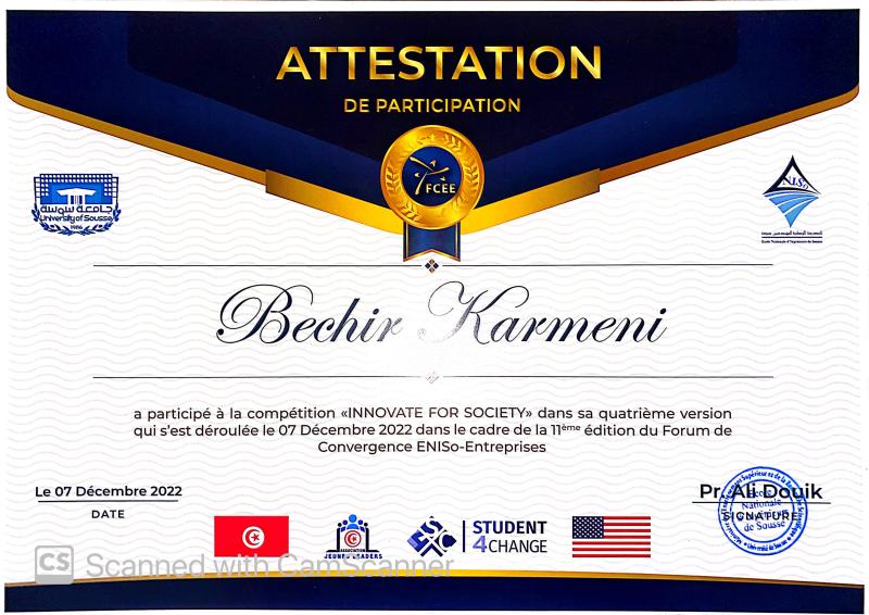 A precious memory of my participation in the 'INNOVATE FOR SOCIETY V 4.0' competition during the 11th edition of the Eniso Entreprises Convergence Forum. An inspiring flashback where I had the opportunity to present our innovative idea and contribute to positive change